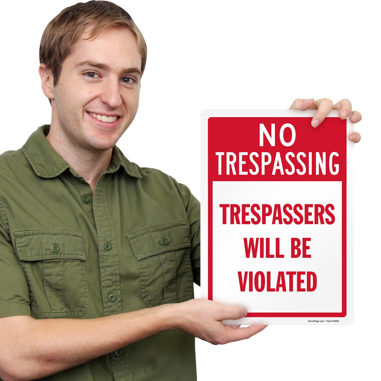 Amazon Com Smartsign 14 X 10 Inch Funny Trespassers Will Be Violated No Trespassing Metal Sign 40 Mil Laminated Rustproof Aluminum Red And White Industrial Scientific